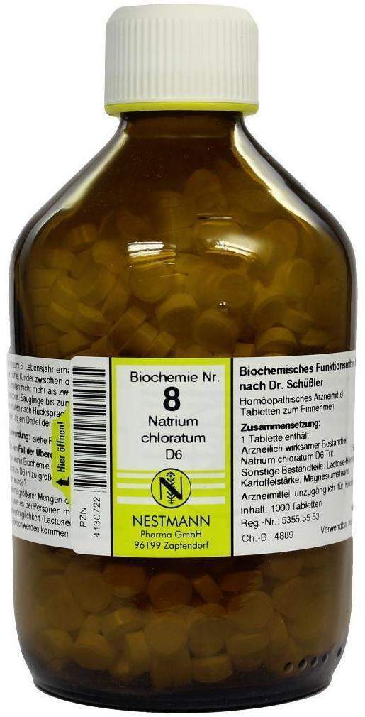 Geben Sie Ihrem Körper die natürliche Unterstützung, die er verdient. Bestellen Sie noch heute Ihre Biochemie 8 Natrium Chloratum D6 1000 Tabletten und erleben Sie die Kraft der Schüssler Salze!